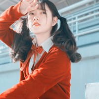 阿宝色女生头像图片 双马尾可爱少女阿宝色系,红色暖色调暖暖的