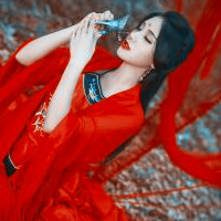 古装红衣侠女 长发漂漂因为爱最后成了魔女