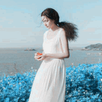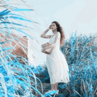 意境美女白色连衣裙
