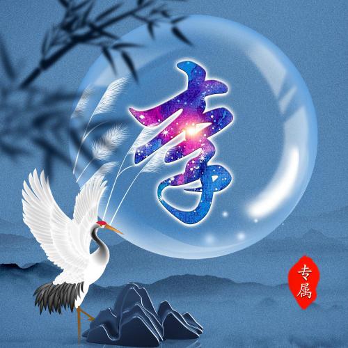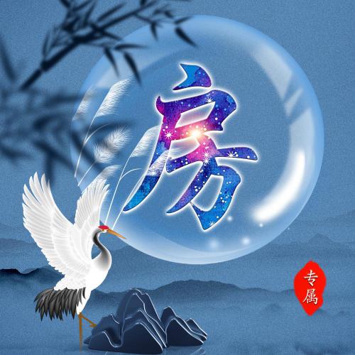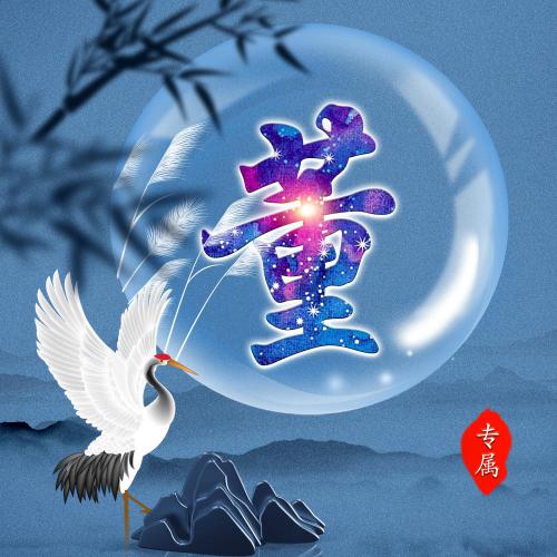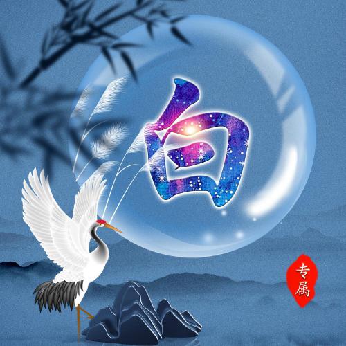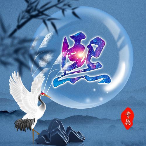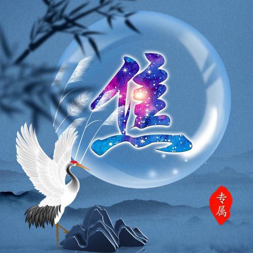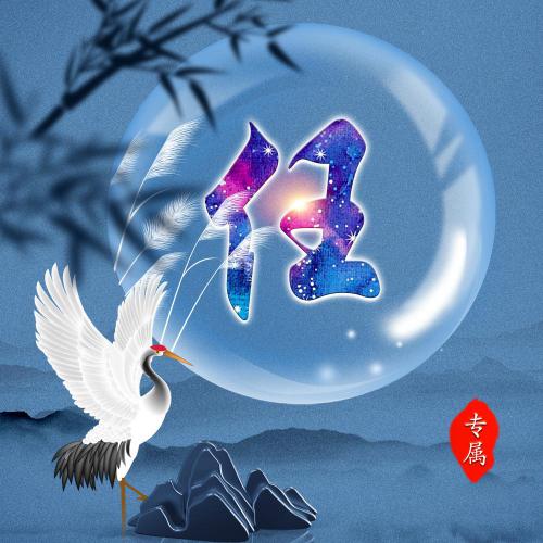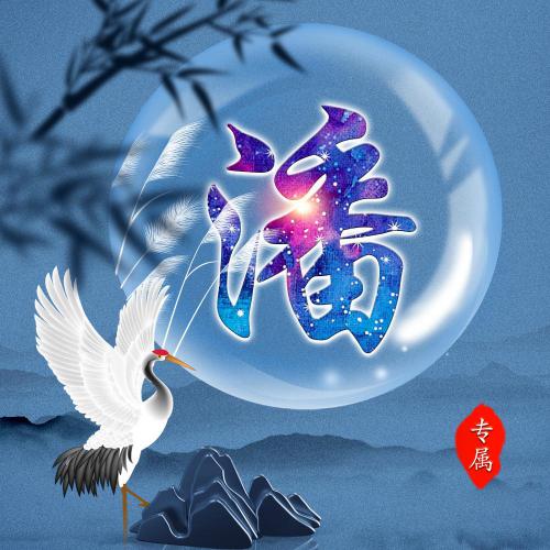 唯美姓氏头像28张 月亮仙鹤山云雾为背景
