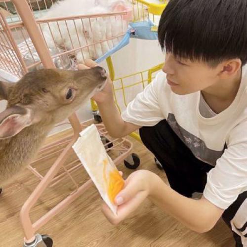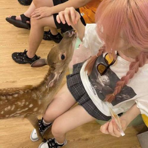 和动物互动的超可爱女头
