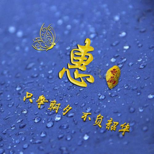 蓝色背景水滴效果姓氏头像 只争朝夕不负韶华
