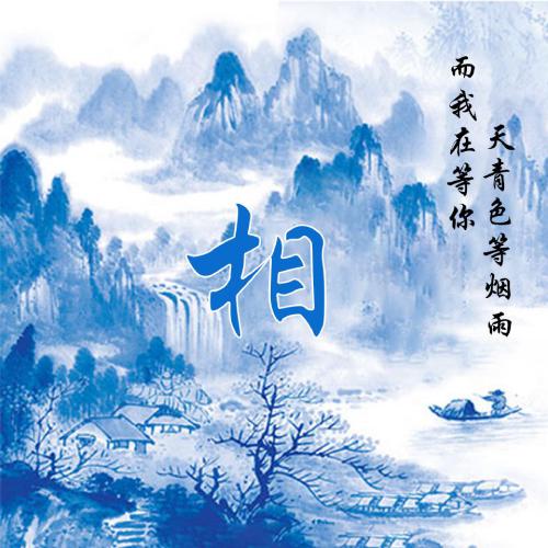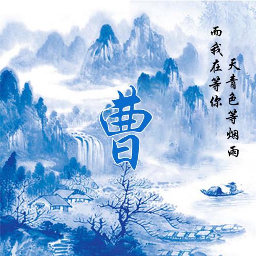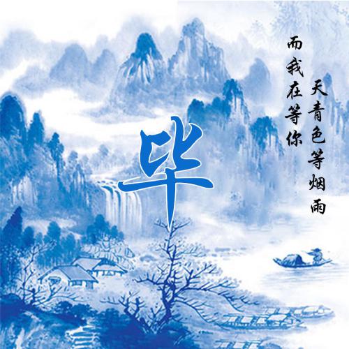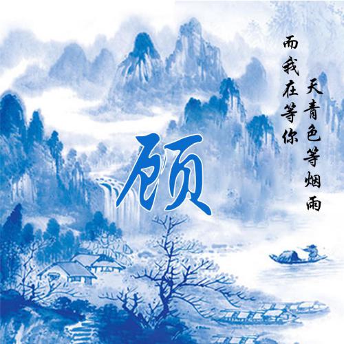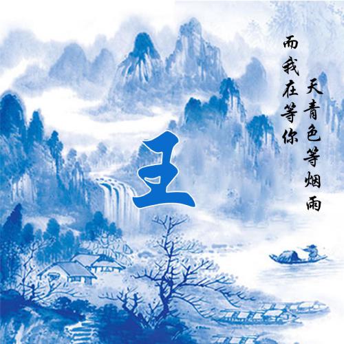 蓝色系水墨风姓氏头像 天青色等烟雨而我在等你