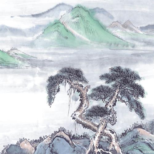手绘山水画风景微信头像