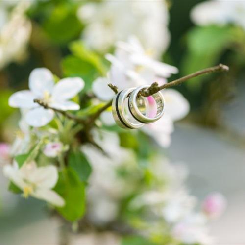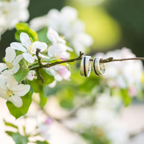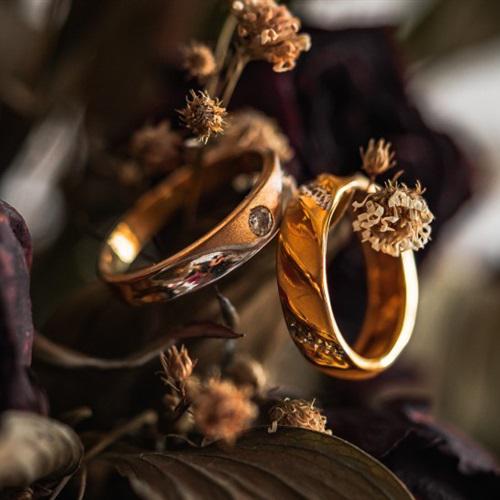 美丽鲜花上的结婚戒指图片