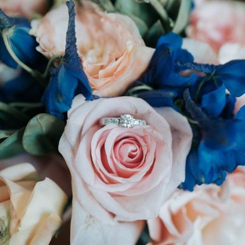 微信头像戒指唯美 美丽鲜花上的结婚戒指图片